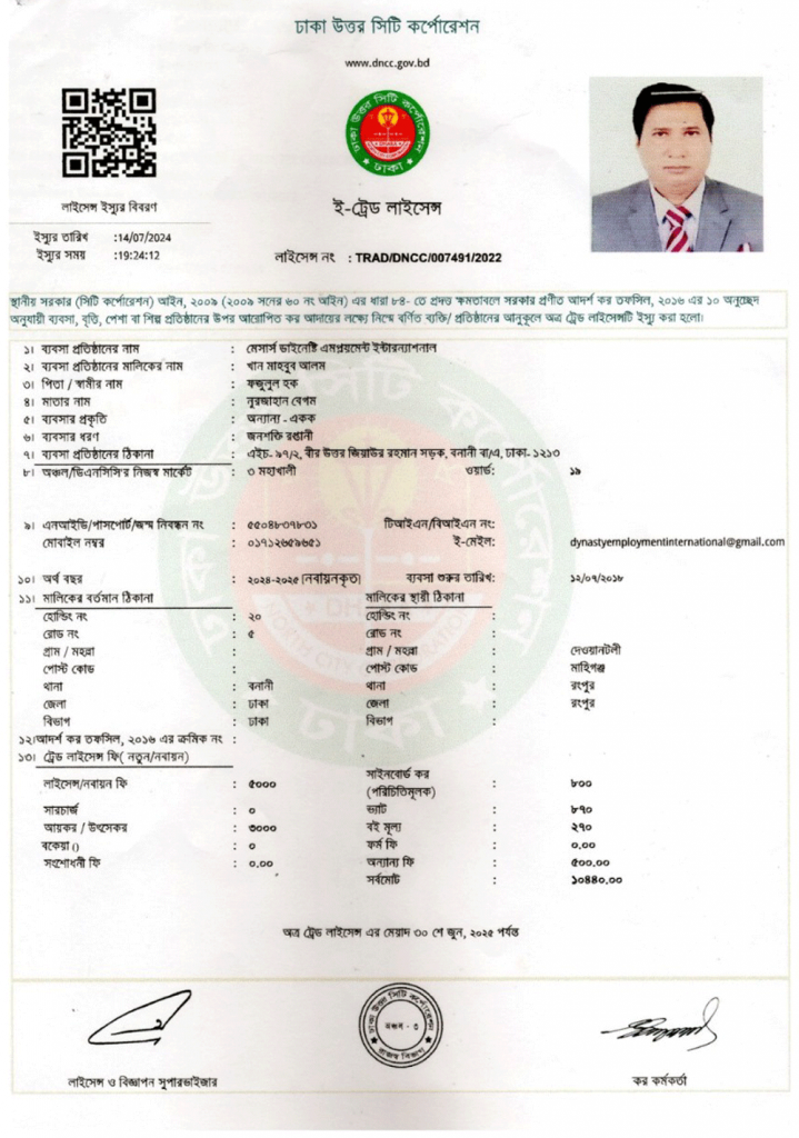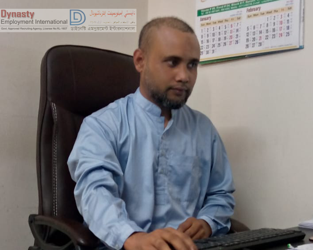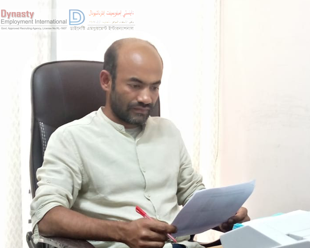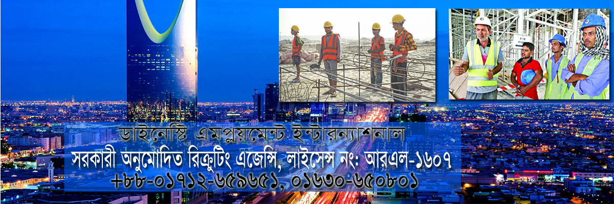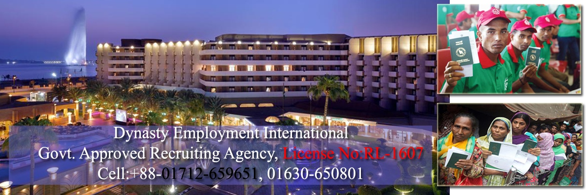 “M/S Dynasty Employment International” Govt. Approved Recruiting Agency, Licence No: RL-1607. House #09(7th Floor), Flat # B7, Road # 04, Block # F, Banani, Dhaka-1213. Which is a pioneering Human Resource Management solutions company that provides manpower sourcing services for organizations across the globe. We are mainly focused on middle –east job market and highly committed to providing the best services. We offer recruitment solutions for companies seeking to find performing individuals and possibly the most qualified workers from Bangladesh. We work closely with our clients to understand their overall manpower needs to meet their specific target and objectives.
